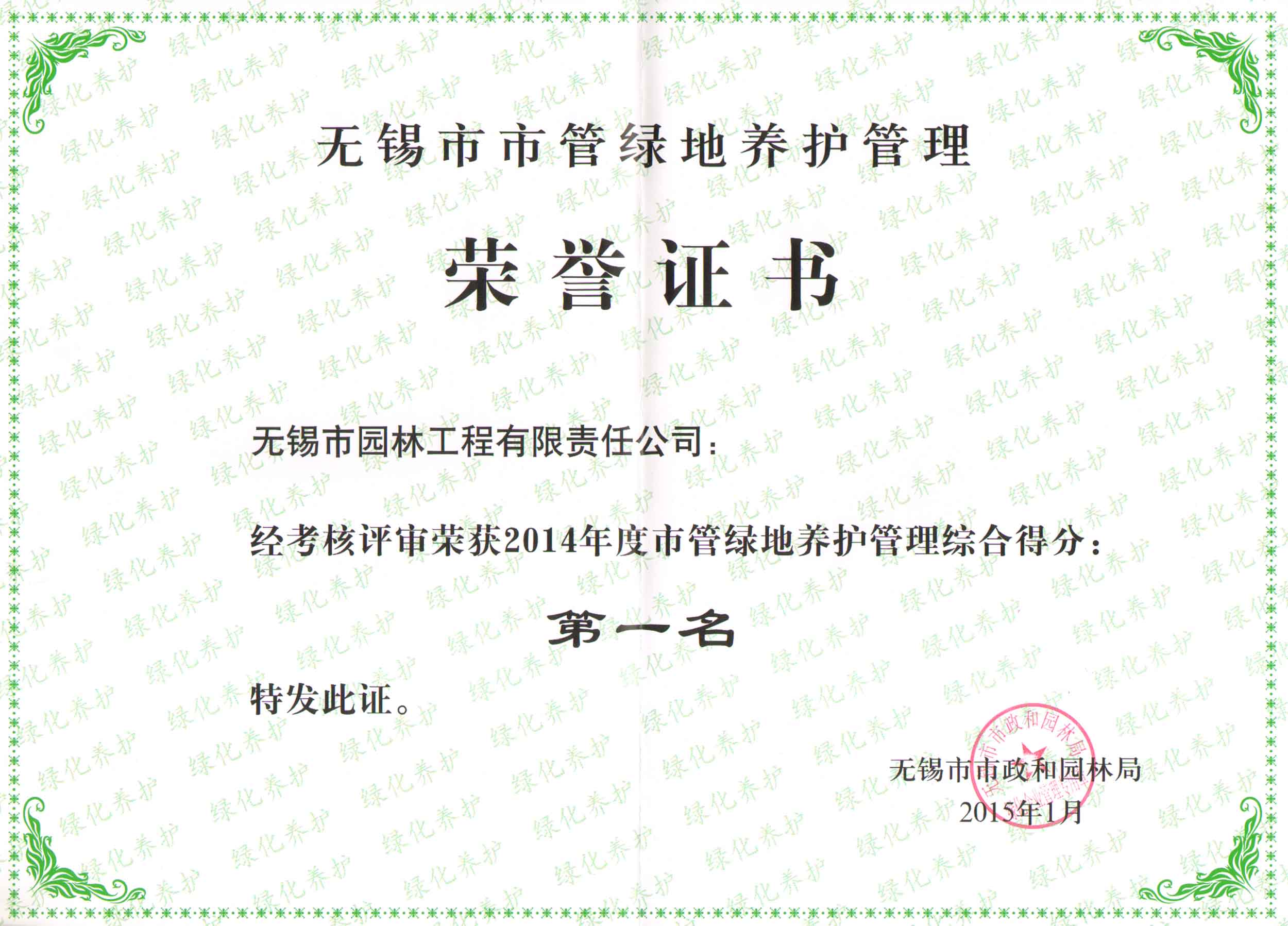 2014年度市管綠地養(yǎng)護(hù)管理綜合得分