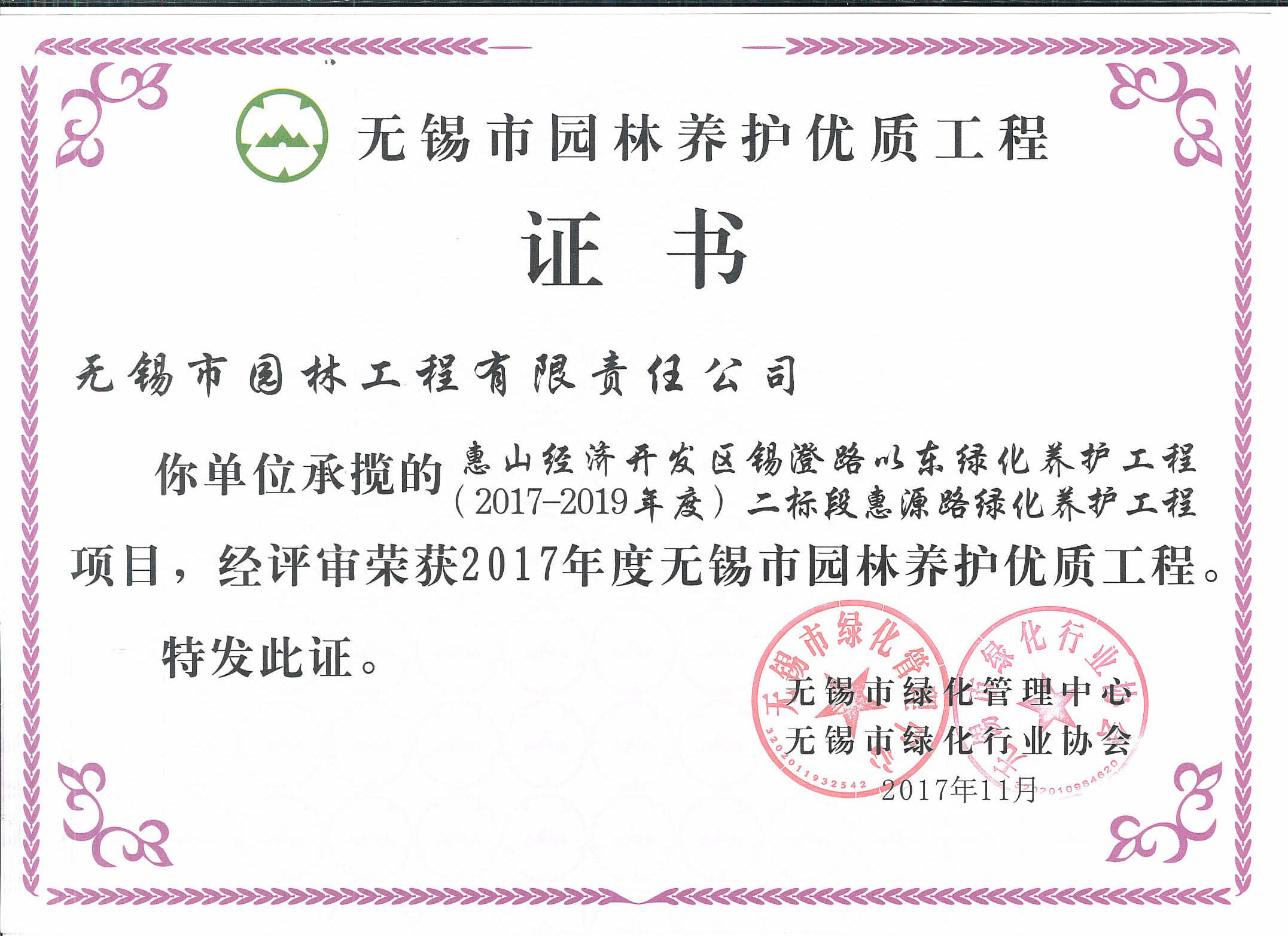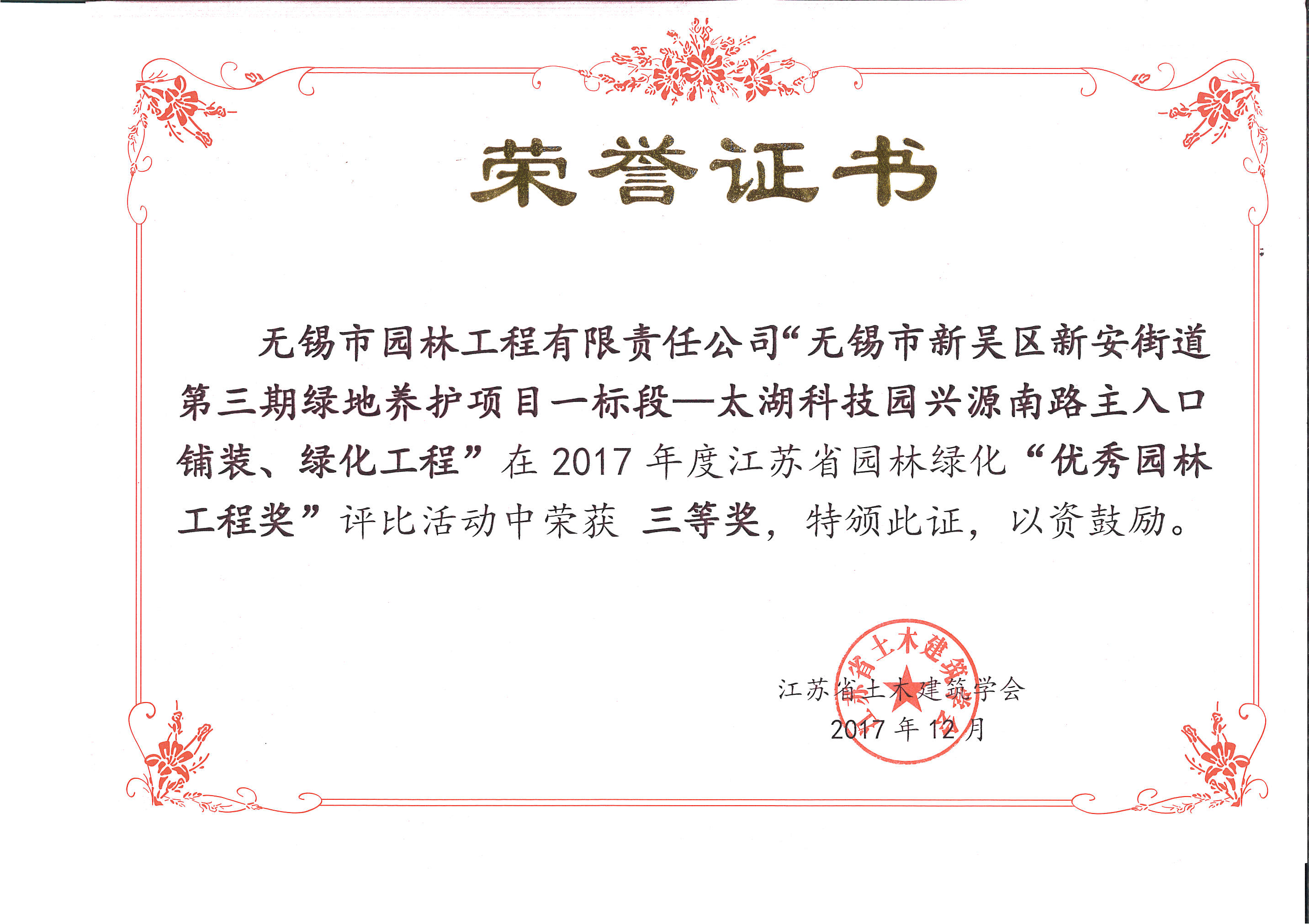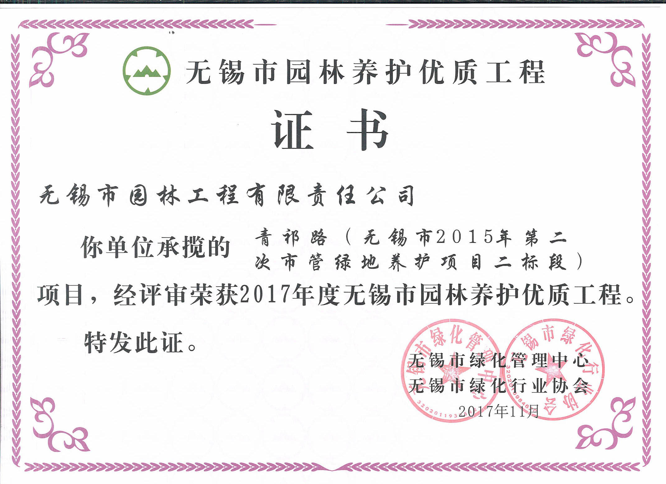 2016揚子杯——無錫地鐵1號線沿線景觀綠化工程三標(biāo)
